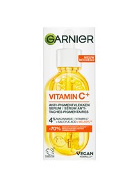 Garnier Vitamine C+* Glow Booster Serum is een gezichtsserum dat zorgt voor een egalere, stralendere huid in 3 dagen en minder pigmentvlekken**. Na 8 weken, zijn de pigmentvlekken met 70% verminderd**. Ga een vermoeide, oneffen en doffe huid tegen met deze formule die verrijkt is met verschillende actieve bestanddelen: niacinamide dat de huid kalmeert en egaliseert, de krachtige antioxidant Vitamine C* die de huid doet stralen, salicylzuur voor een peelend effect en het stimuleren van huidvernieuwing, en Melasyl om pigmentvlekken doeltreffend aan te pakken.