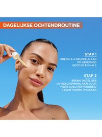 Breng ’s ochtends en ’s avonds één druppel aan op een gereinigd gezicht, de hals en bovenborst. Garnier zet zich al sinds 1989 in voor een wereld zonder dierproeven en voor groenere schoonheid. Bovendien is de verpakking gemaakt van 25% gerecycled glas***. Dit product is dermatologisch getest en de vegan formule bevat geen dierlijke ingrediënten of bijproducten.