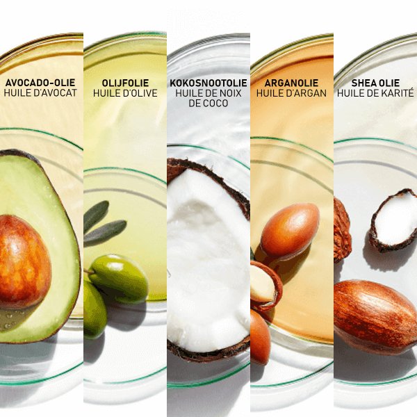 • L’huile d’argan : les pépins des fruits de l’arganier sont pressés pour donner une huile qui nourrit intensément le cheveu. Elle provient du Maroc, dans le cadre du commerce équitable selon le principe de solidarité*.