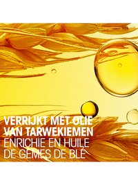 3. Rincez abondamment les cheveux. Enfin, appliquez la crème nourrissante et revitalisante à l'huile de germe de blé. Massez et laissez agir pendant 2 minutes avant de rincer abondamment les cheveux. Veuillez toujours consulter le mode d'emploi avant utilisation.