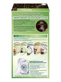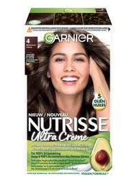 Garnier Nutrisse Ultra Crème est une coloration capillaire permanente nourrissante qui couvre jusqu’à 100 % des cheveux gris. La formule de Nutrisse Ultra Crème offre une couleur améliorée, plus riche grâce à la technologie color boost. Nutrisse Ultra Crème nourrit les cheveux pendant la coloration. L’après-shampoing traitant offre une nutrition supplémentaire après la coloration. L’après-shampoing est enrichi en 5 huiles de fruits : l’huile d’avocat, l’huile d’olive, l’huile de coco, l’huile d’argan et l’huile de karité. L’après-shampoing répare la fibre capillaire, retient la couleur et protège contre la sécheresse. Les cheveux sont plus brillants et jusqu’à 5x plus forts*.