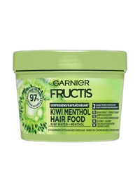 Le masque capillaire Garnier Fructis Kiwi Menthol Hair Food est un masque hydratant 3 en 1 innovant, spécialement conçu pour les cheveux gras à la racine et secs sur les longueurs. Utilisez ce produit polyvalent comme après-shampooing nourrissant, masque intensif pour une nutrition en profondeur ou comme soin sans rinçage léger. Sa formule vegan, enrichie en eau de kiwi hydratante et en menthol rafraîchissant, contient pas moins de 97 % d'ingrédients d'origine naturelle. Découvrez une sensation de fraîcheur immédiate sans alourdir vos cheveux et profitez d'une hydratation fraîche pendant 3 jours* avec le masque capillaire Garnier Fructis Kiwi Menthol Hair Food.