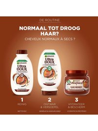 Le masque Ultra Doux Lait de Coco & Macadamia est un masque nourrissant pour les cheveux normaux à secs. Les cheveux sont jusqu'à 3x plus nourris et plus doux en seulement 1 minute.