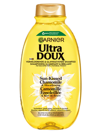 Le Shampooing Garnier Ultra Doux Camomille Ensoleillée & Miel de fleurs nettoie en douceur, apporte de la brillance, illumine, adoucit et répare les cheveux. Découvrez le pouvoir Adoucissant de la Camomille et l'action Nourrissante du Miel de Fleurs combinés dans une formule illuminatrice et brillance qui répare* les fibres capillaires endommagées, les adoucit et révèle des cheveux blonds radieux. Pour des cheveux blonds radieux de santé avec des reflets naturels. La formule convient à tous les types de blonds : naturels, méchés et sensibles. Garnier s'engage pour une beauté durable. Pour encore plus de soins, découvrez la routine complète.