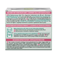 La crème de jour à l'acide hyaluronique et à l'aloe vera hydrate jusqu'à 48 heures*. Elle contient de l'aloe vera biologique et est enrichie avec de l'acide hyaluronique d'origine naturelle. Sa texture est légère, s'applique facilement et pénètre rapidement dans la peau.