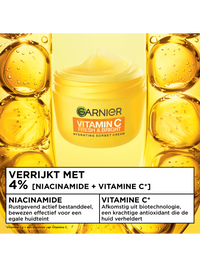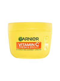 Ervaar de nieuwe generatie hydratatie met onze nieuwe moisturizer: Garnier Vitamine C* Fresh & Bright Hydraterende Sorbet Crème. Deze ultralichte en frisse textuur smelt in de huid en biedt 48 uur hydratatie**. De Garnier Vitamine C* Fresh & Bright Hydraterende Sorbet crème is klinisch bewezen om de huid te verhelderen, Bij 47% van de proefpersonen waren pigmentvlekken verminderd in slechts 1 week***. Daarnaast biedt deze hydraterende crème 8 uur lang oliecontrole**. Garnier Vitamine C* Fresh & Bright Hydraterende Sorbet crème voelt niet-plakkerig en niet-vettig.