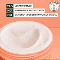 Kies voor het 3-in-1 Fructis Hair Food Pineapple haarmasker van Garnier. De nieuwe formule is geboost met vitamine C*, E, F*. De rijke en romige textuur met ananasextract is makkelijk aan te brengen en voedt het haar onmiddellijk zonder het te verzwaren. Voor 2x minder gespleten punten**, beter doorkambaar en glanzend haar. Het haarmasker bevat karitéboter en is geschikt voor stjil, golvend en krullend haar.