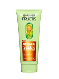 De Keratin Sleek Shampoo transformeert pluizig en droog haar. De anti-pluis technologie verrijkt met 4% [Keratine + Argan] complex zorgt voor 3 dagen glans en gladheid*, voor perfect vallend haar.Is je haar pluizig, droog en moeilijk onder controle te houden? Ontdek de nieuwe Keratin Sleek Shampoo van Garnier Fructis. De geavanceerde formule biedt een anti-pluis technologie voor een langdurig resultaat.